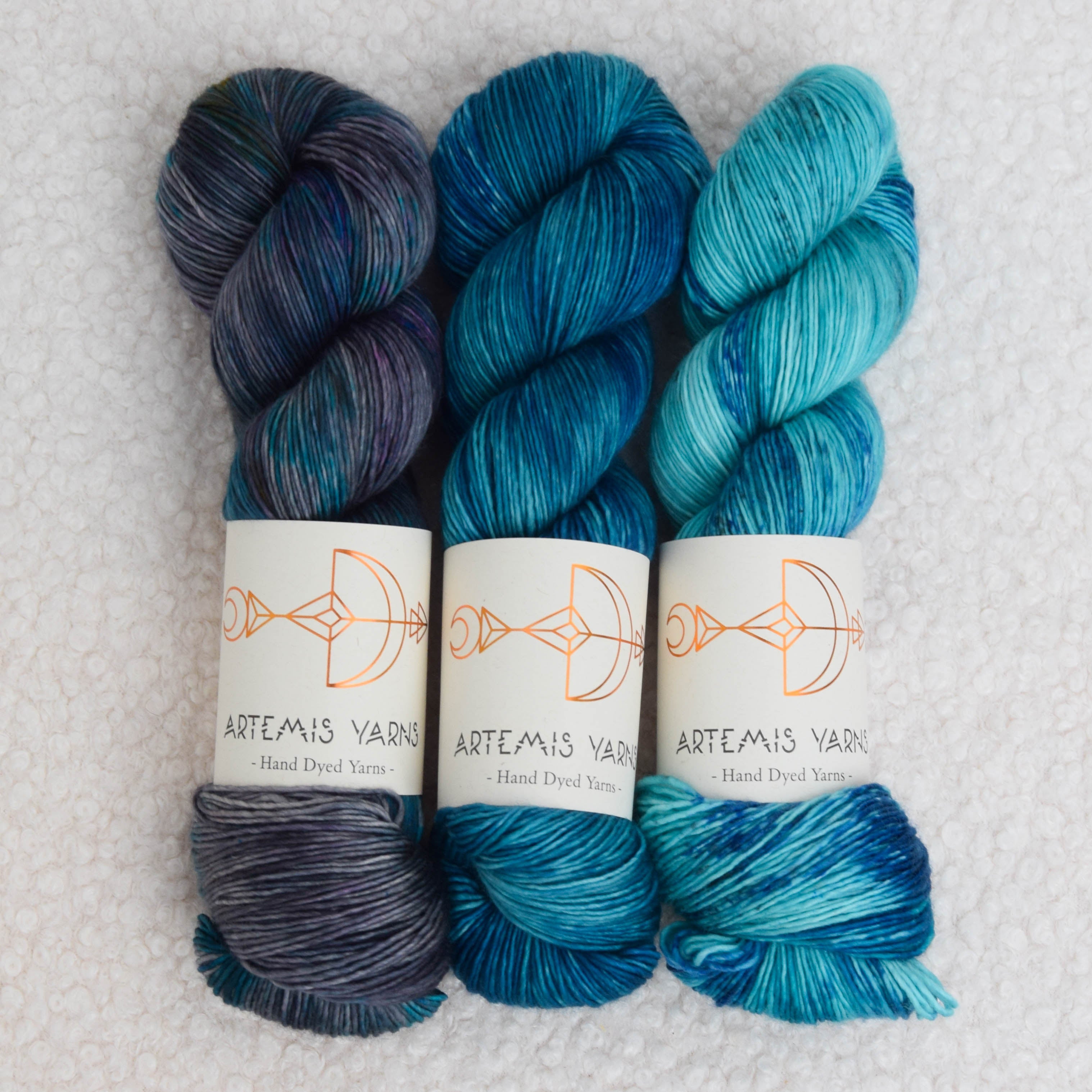 You will receive 3 skeins, one of each of the following colorways : Thaleia, Thétis, Night lights.