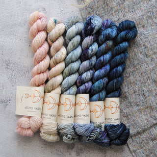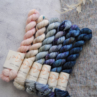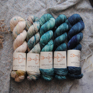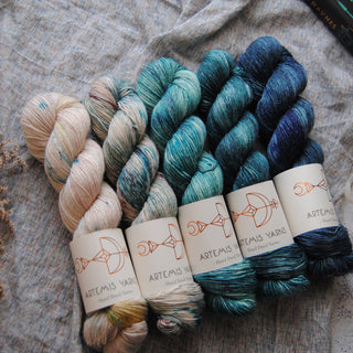 I carry two different single bases, Squishy single and Classic single, both the same yardage, but Squishy single is more loosely spun, softer and plumpier, and Classic single is regularly spun, highly spun and thinner than Squishy single.