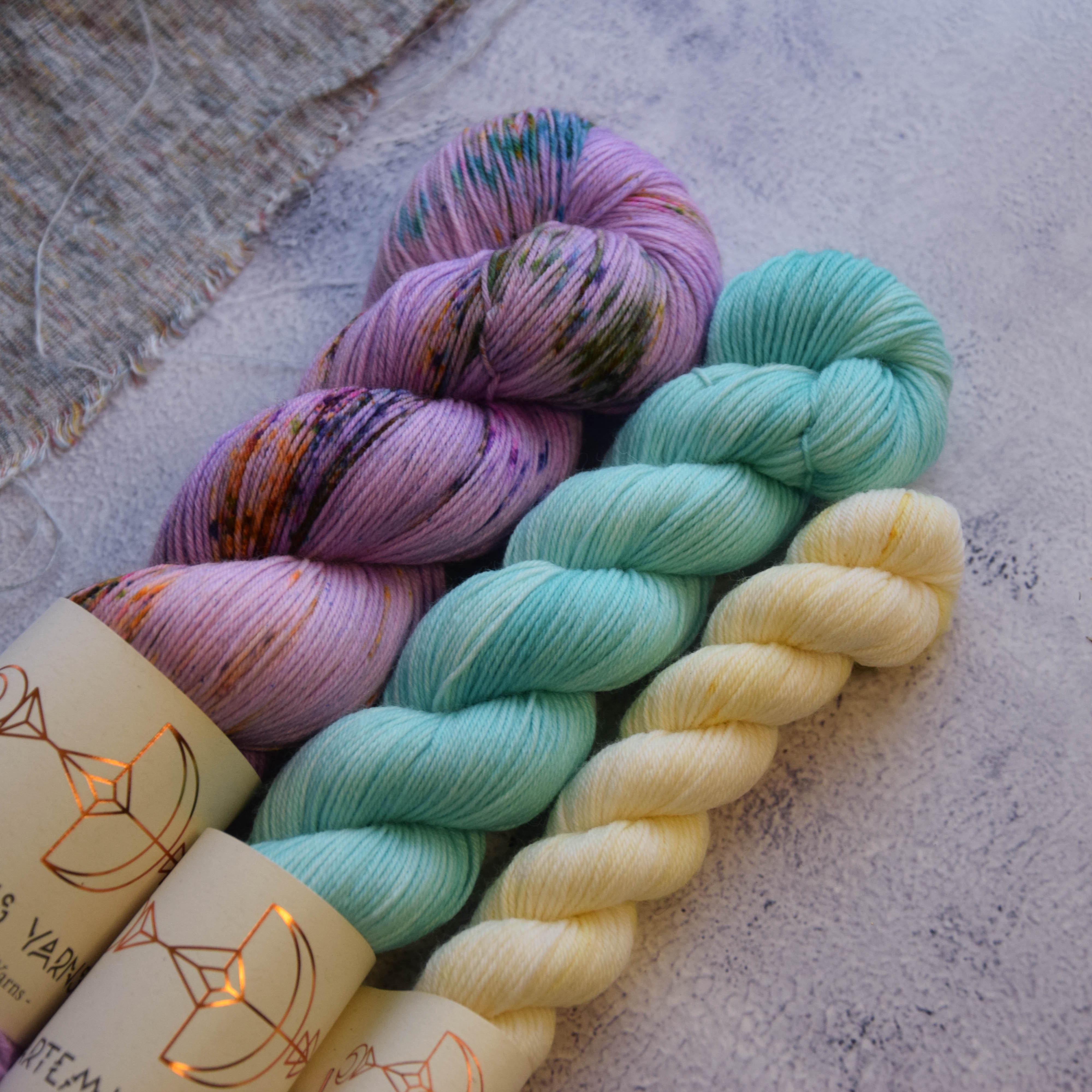 Ce lot est composé d'un écheveau de 100g coloris Blackberry cake (bain plus rose), d'un écheveau de 50g coloris Snake eye, ainsi que un mini écheveaux de 20g coloris Vanilla Ice cream