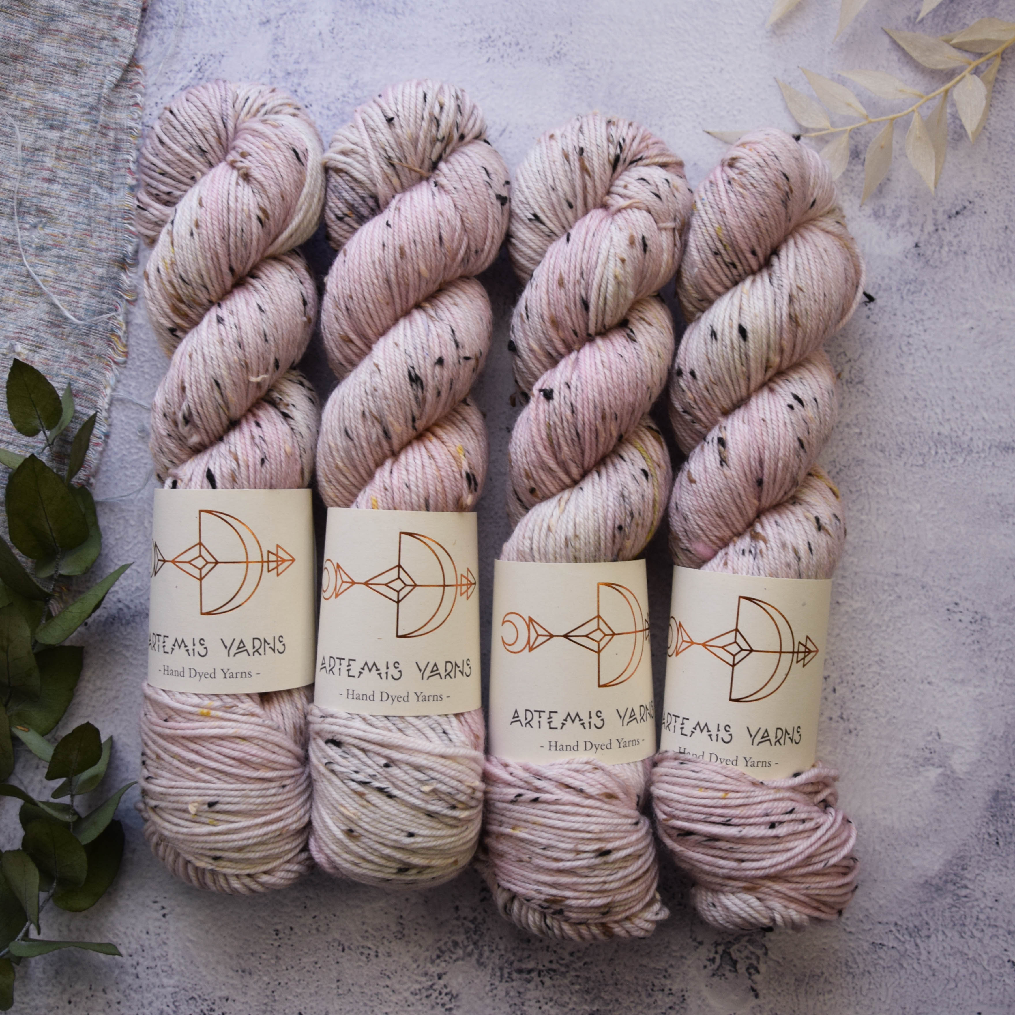 Une base en mérinos avec une touche “flocons” de laines noirs et beige pour un joli effet tweed.