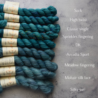 Le thème de mes calendriers de l'avent 2025 était les Néréides, disponible en sets de 24 mini écheveaux, en sets de 5 écheveaux, avec leurs accessoires coordonnés !
