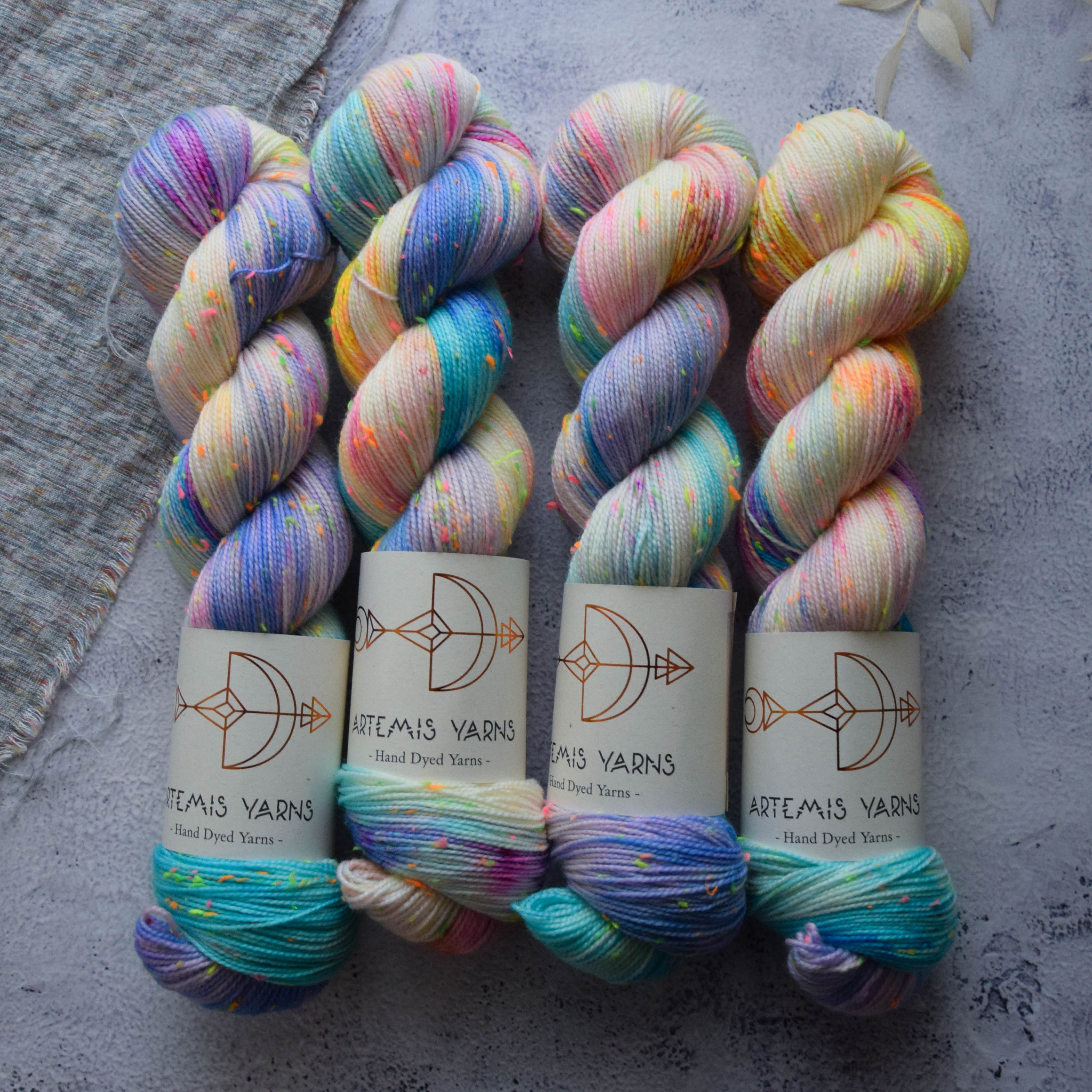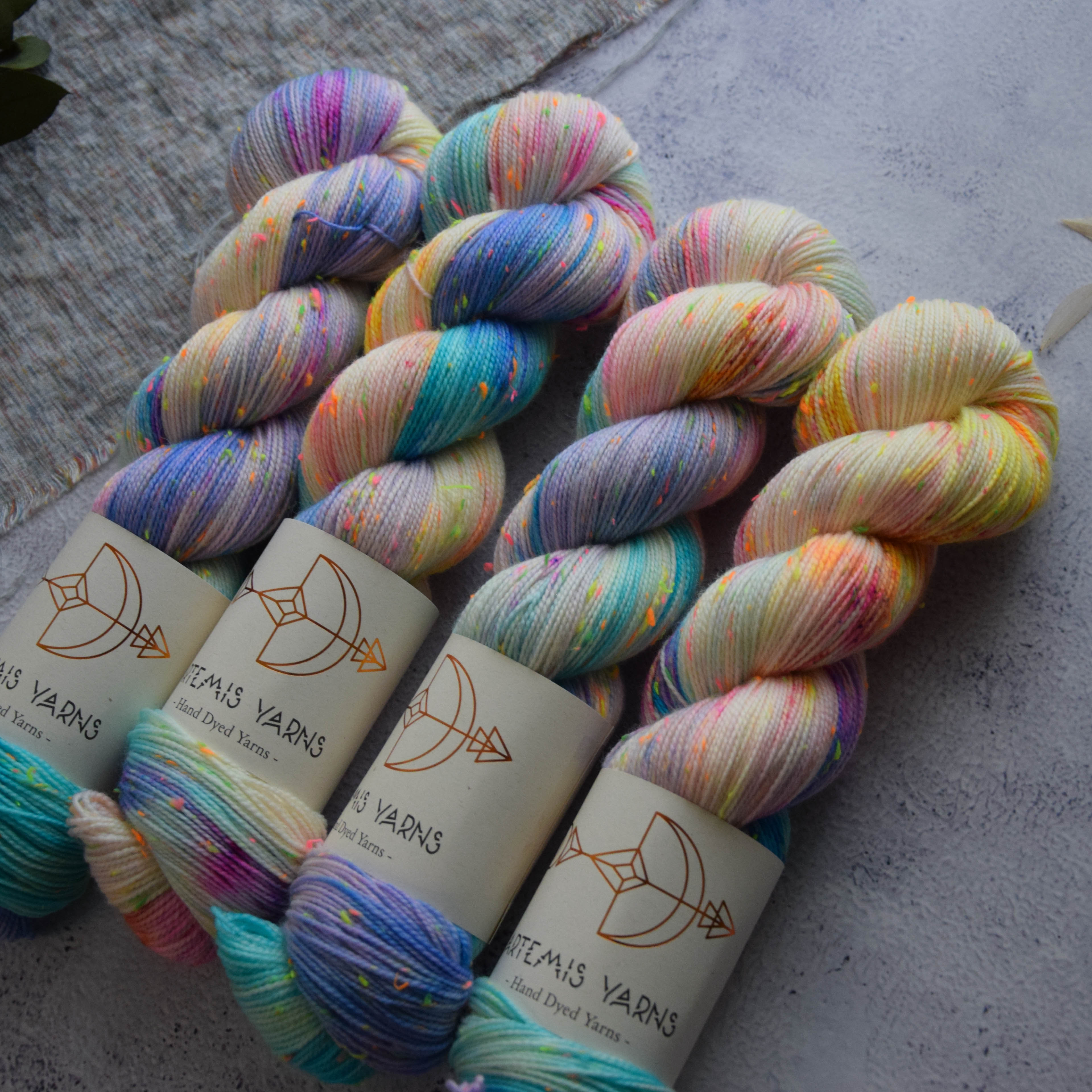 Jolie base en Mérinos agrémenté de petits flocons de donegal neps néon.