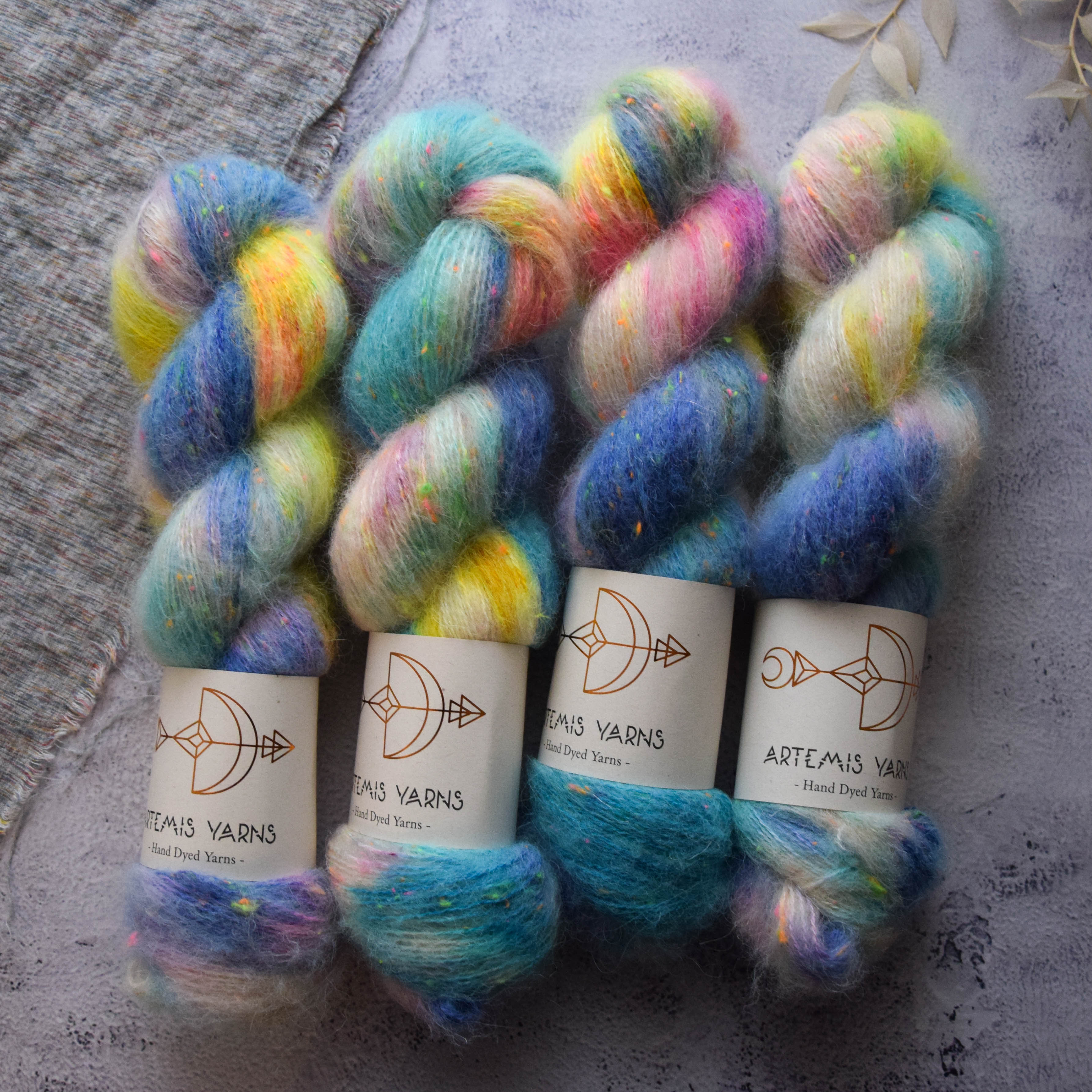 Jolie base en Mérinos agrémenté de petits flocons de donegal neps néon. Cette base est non teinte.