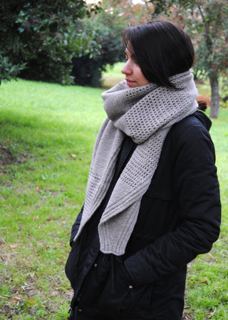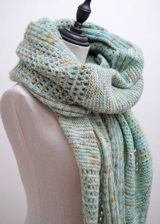 one color version (Small and Large sizes available) : Total yardage : 265g = 1126 m / 1232 yds Small size : 3 skeins of fingering weight. Total yardage : 361g = 1535 m / 1678 yds Large size : 4 skeins of fingering weight. If you want to knit this version with lace + fingering held double you will need the same yardage for lace weight yarn.