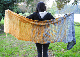 24 mini skeins fade version (Large size only) : Total yardage : 361g = 1535 m / 1678 yds Requires 24 mini skeins of fingering weight, 20g each, preferably a fade but it’s your shawl, go with the flow :)