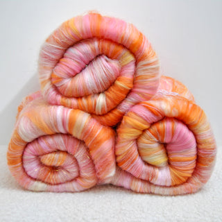 Contents : Hand dyed wool, 100% extra fine merino 19 microns, sparkling angelina, glit